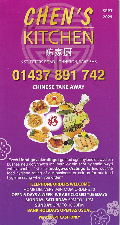 Menu Website of  Chen's Kitchen.